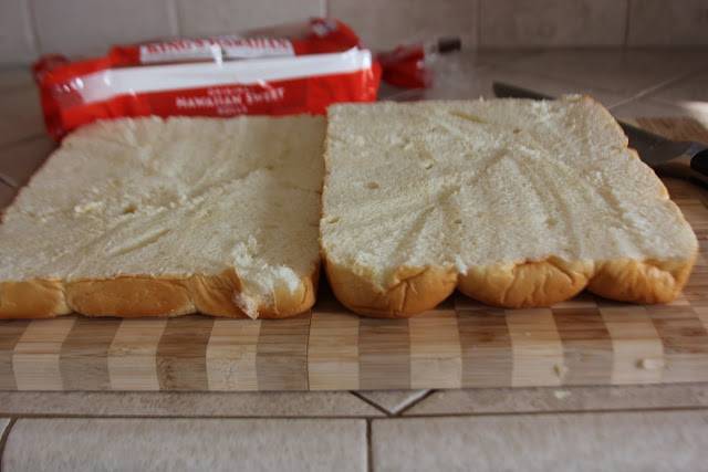 Нам понадобится белый хлеб. Разрежьте его вдоль на две или три части (в зависимости от размера хлеба).