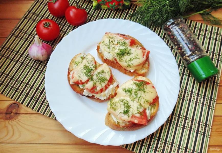 Запекайте бутерброды в микроволновке 2-3 минуты или в духовке 7-8 минут.