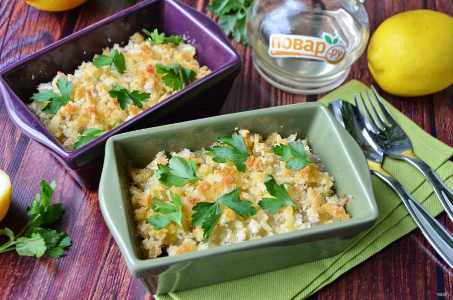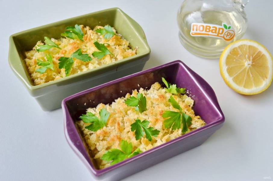 10. Запекайте до золотистой корочки, украсьте петрушкой, сбрызните лимонным соком.