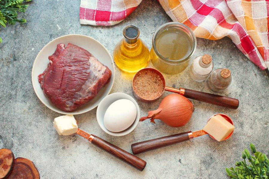 Подготовьте все необходимые ингредиенты для приготовления говядины по-гусарски. Говядину вымойте и обсушите. Репчатый лук почистите и сполосните.