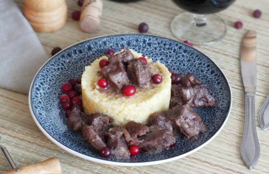 Говядину с клюквой подавайте с крупяным гарниром. Приятного аппетита!
