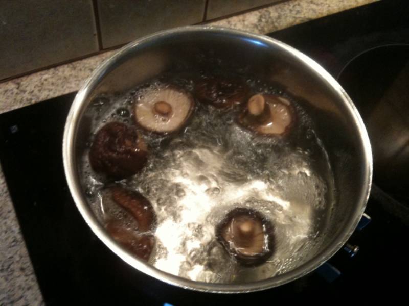Положите шиитаке в подсоленную кипящую воду и отварите в течение 7-10 минут.