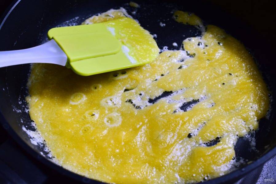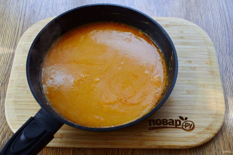 В глубокой сковороде или сотейнике растопите сливочное масло, добавьте муку, тщательно перемешайте до однородности, обжарьте до появления орехового запаха.