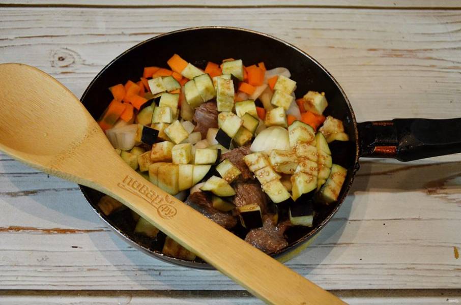 4. Добавьте овощи по очереди, обжаривая по 5 минут каждый раз.