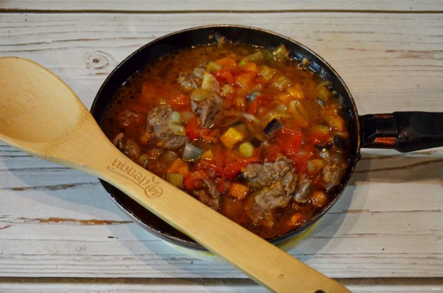 6. Добавьте воду и тушите 1,5 часа. В конце посолите.