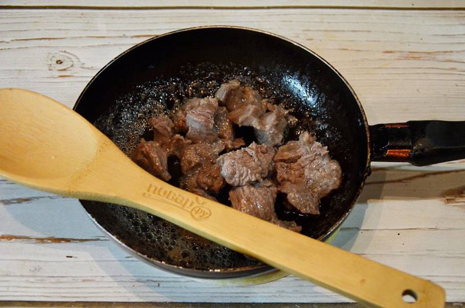 3. Обжарьте мясо на сковороде до хрустящей корочки.