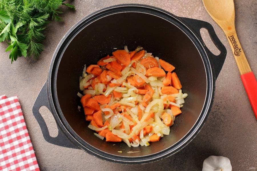 Обжарьте овощи до мягкости.