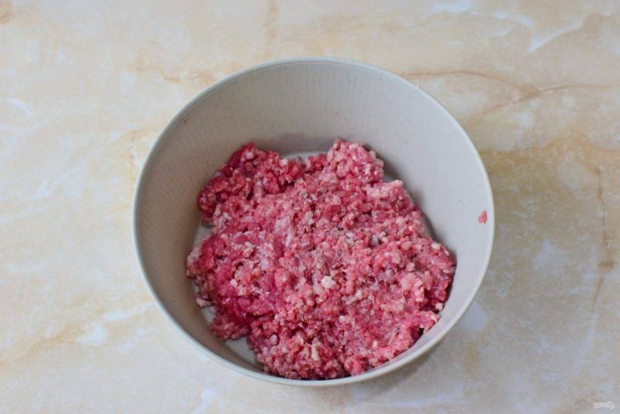 Нарежьте мясо на кусочки и пропустите через мясорубку, превратив его в фарш.