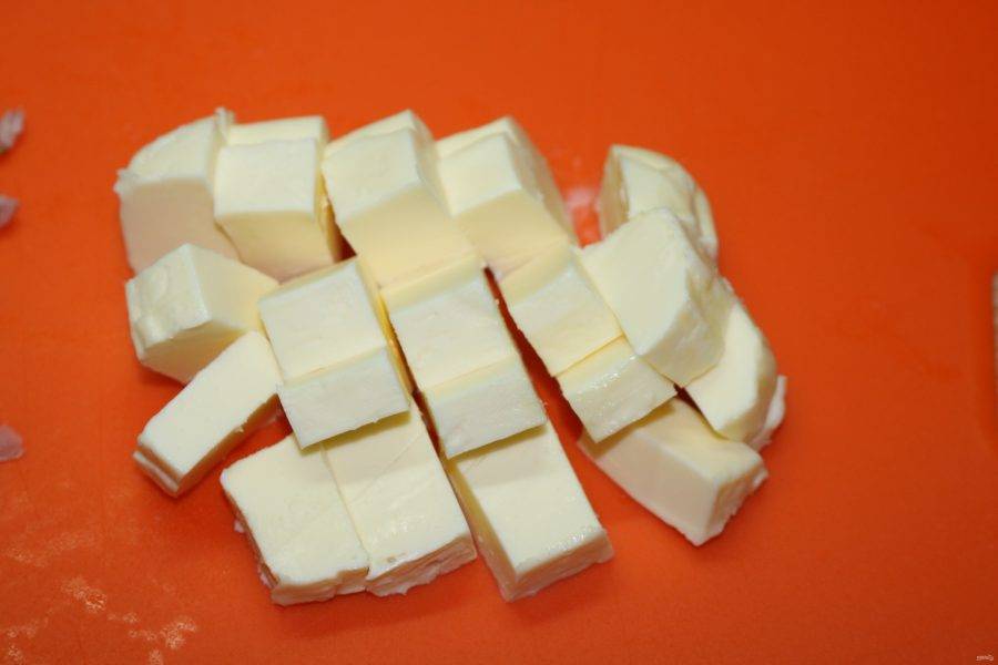 Масло нарежьте кубиками.