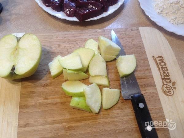 3. Яблоко очистите от сердцевины, можно снять кожуру. Нарезаем яблоко.