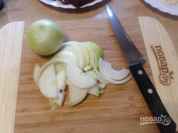 1. Подготовим необходимые для приготовления продукты. Яблоко лучше взять твердое и слегка кислое, если любите лук, можно взять и побольше.