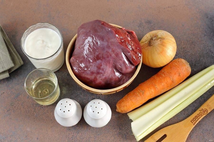 Видео рецепт "Говяжья печень тушеная с сельдереем"