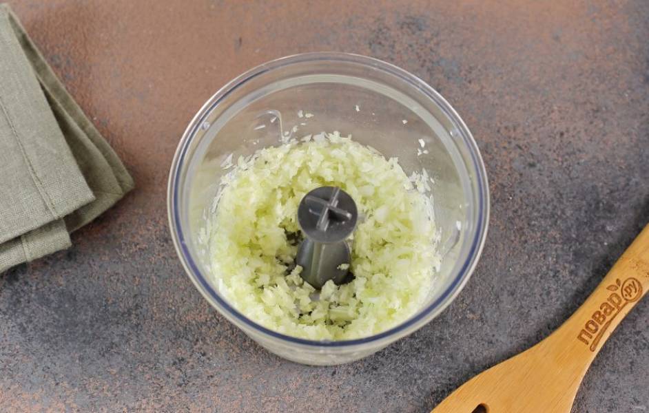 Сельдерей нарежьте кусочками и измельчите при помощи блендера. Если нет блендера, то просто мелко порубите ножом.