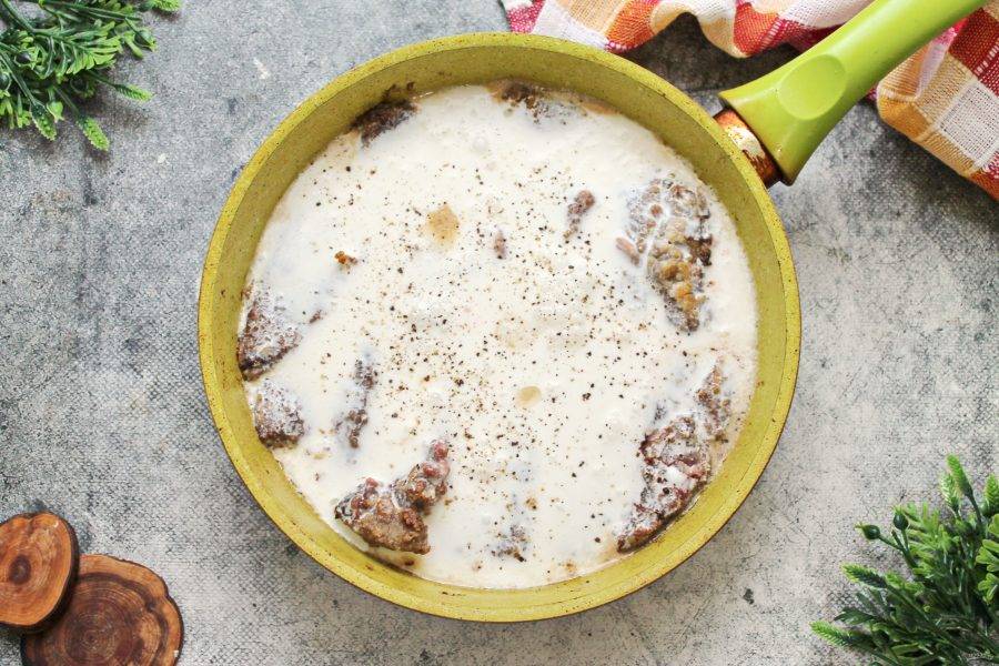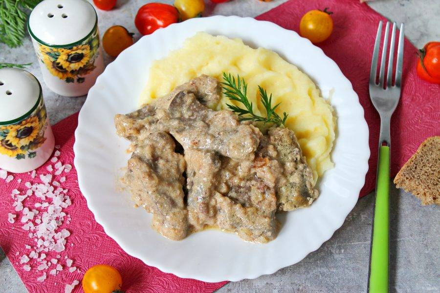 Говяжья печень тушеная в сметане готова. Приятного аппетита!