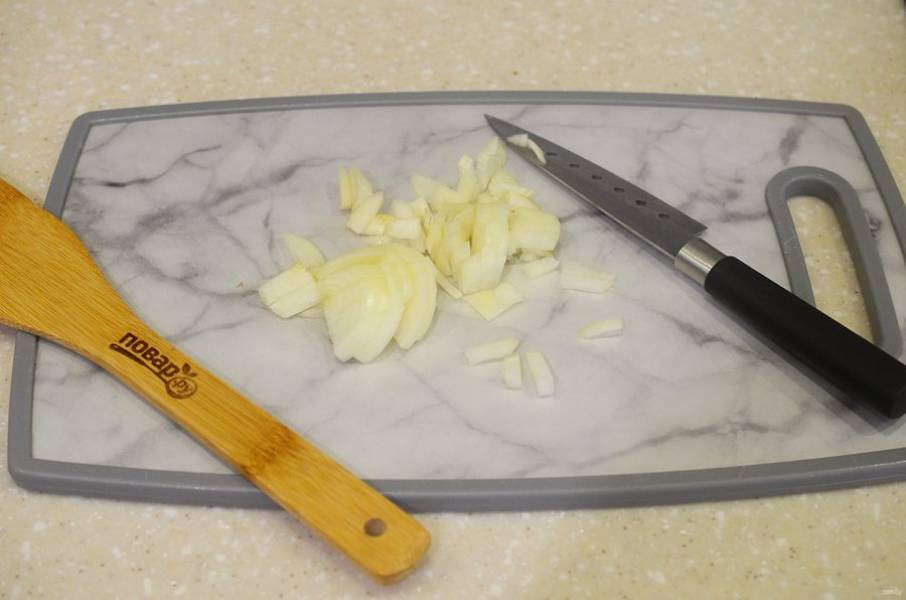 5. Добавьте печень в сковороду и обжарьте все вместе.