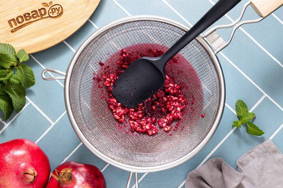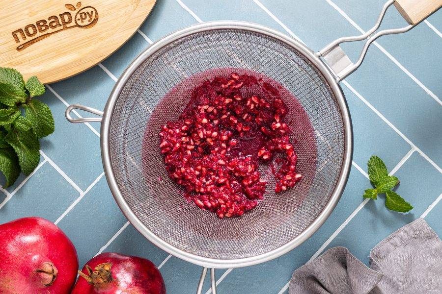 Процедите измельченные зерна граната через мелкое сито или несколько слоев марли.