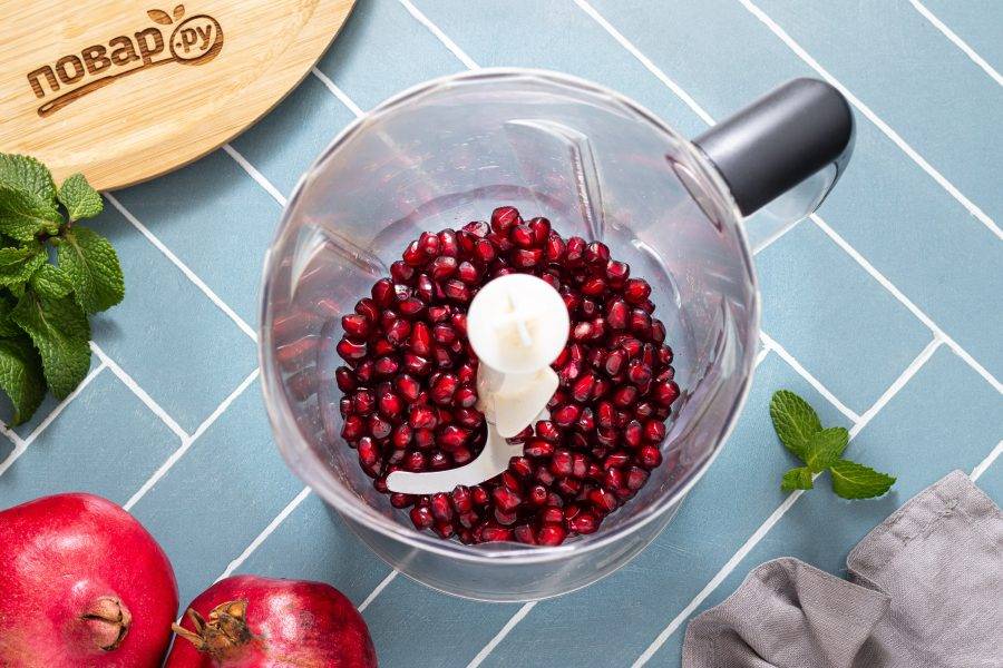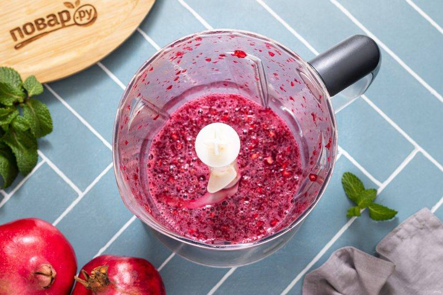 Аккуратно пробейте зерна до выделения сока. Измельчать лучше на минимальной скорости, буквально 10-20 секунд. Не измельчайте грант в пюре, достаточно просто, чтобы он пустил сок.