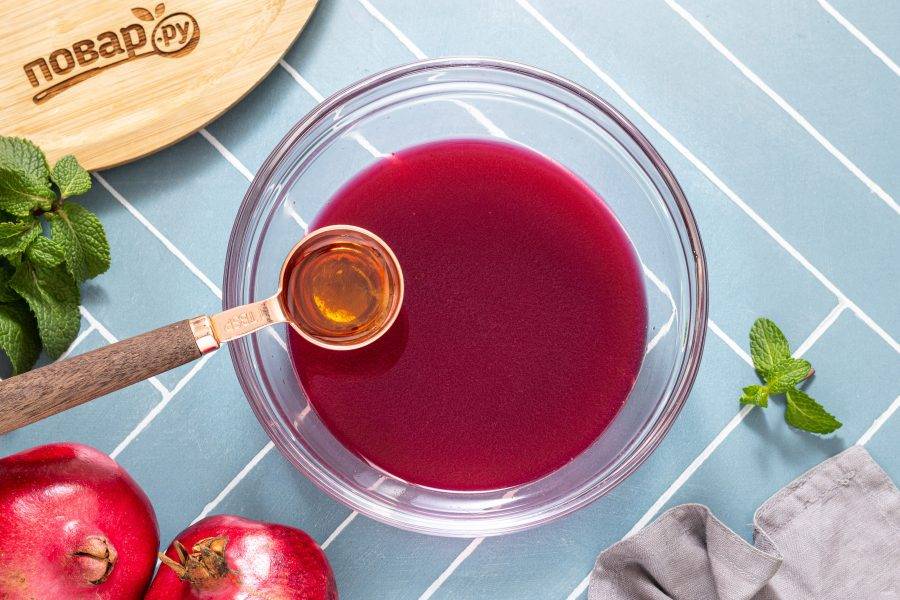 Добавьте в сок сахар или мед по вкусу.