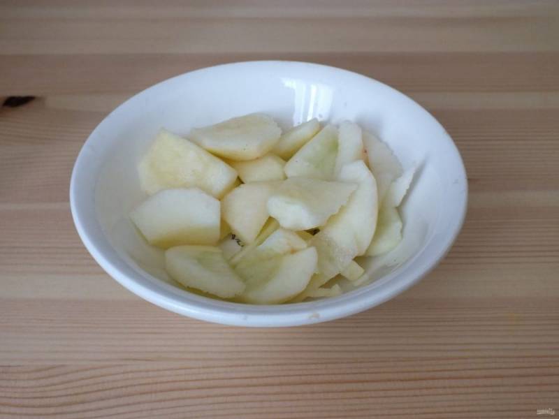 Почистите яблоки от кожуры и семенной коробочки. Нарежьте дольками и запеките в микроволновой печи до пюреобразного состояния.