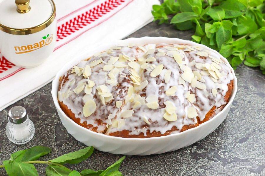 Извлеките греческий дрожжевой пирог из духовки и остудите на холоде. В таком виде его можно подавать к столу. Но по желанию вы можете пропитать его сиропом или украсить сахарной глазурью, взбитой из 1 ст.л. лимонного сока и 80 граммами сахарной пудры. Присыпьте глазурь миндальными хлопьями и дайте ей высохнуть.