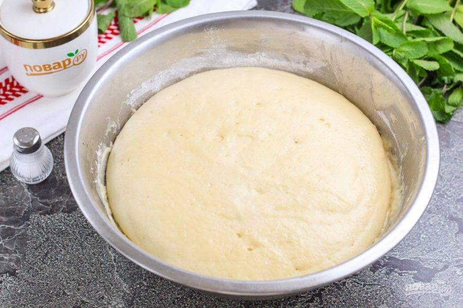 Не прекращайте следить за ним, так как тесто очень быстро увеличивается в размерах. Когда оно станет пышным и воздушным — смочите руки в масле и обомните его. Это может произойти чуть раньше — за 40 минут в зависимости от теплоты в помещении.
