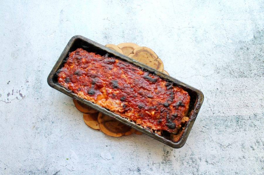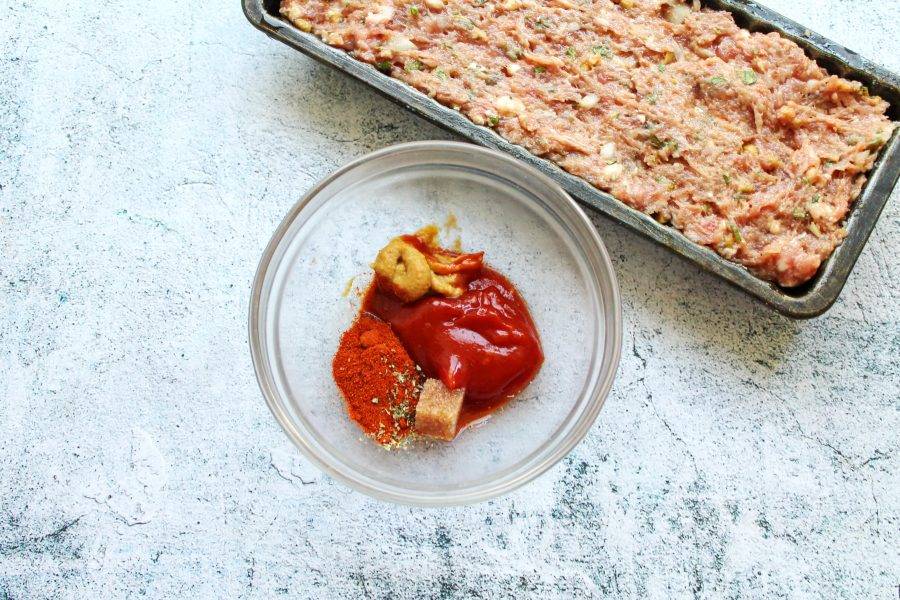 В миске смешайте кетчуп, винный уксус, горчицу, паприку, корицу и коричневый сахар. Смажьте верх рулета.