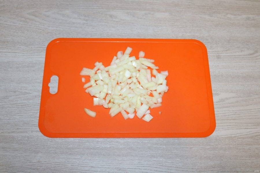 Лук нарежьте кубиками.