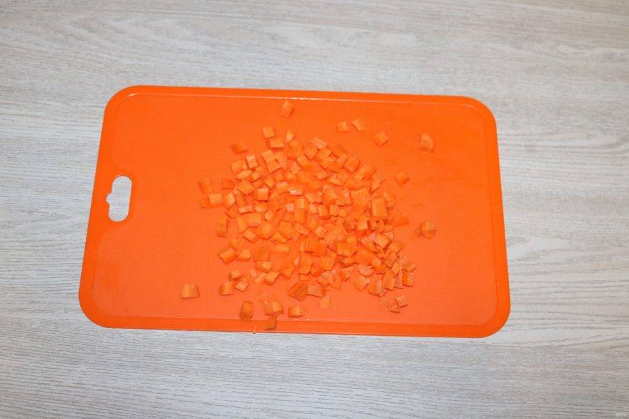 Морковь нарежьте кубиками.