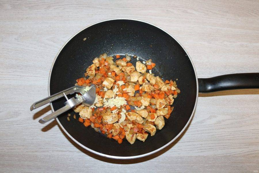 Выдавите чеснок, хорошо перемешайте .
