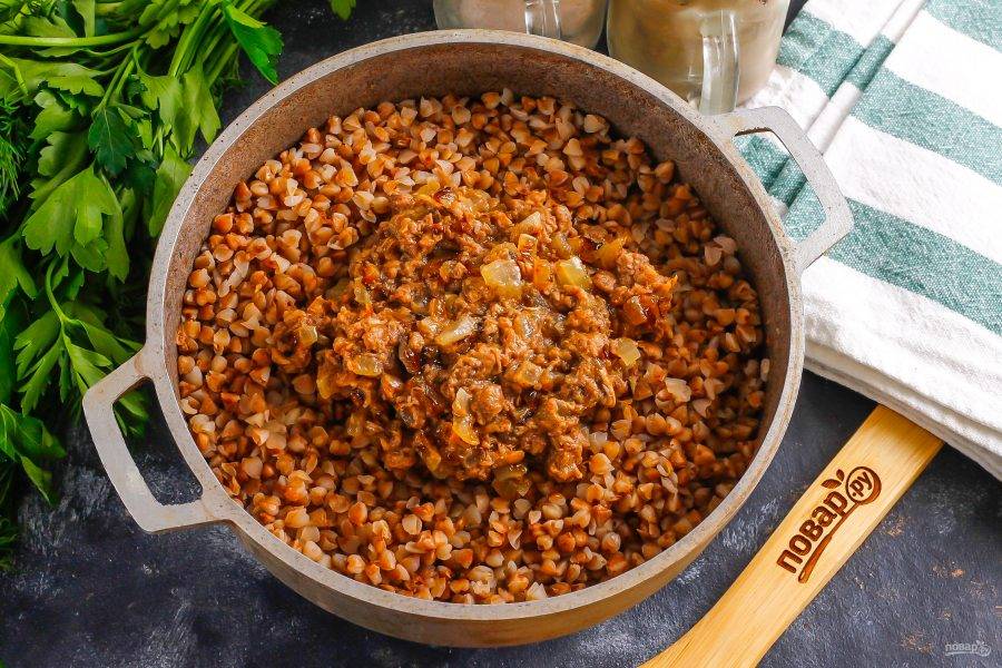 Выложите зажарку в кашу и перемешайте.
