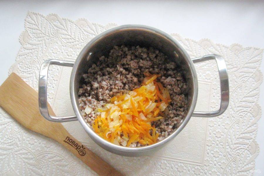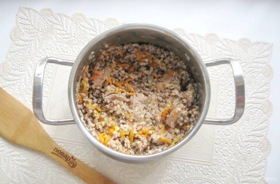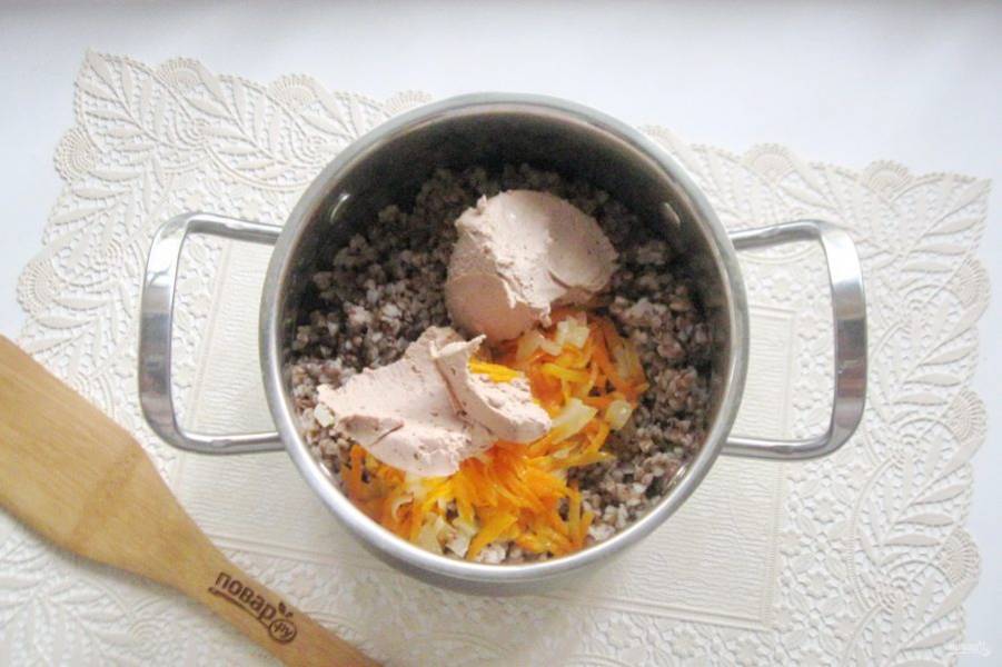 Гречневая каша с паштетом готова. Подавайте к столу в горячем виде.