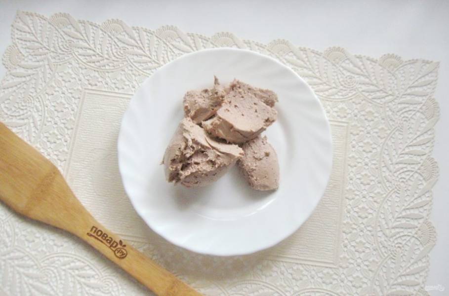 Баночку с печеночным паштетом откройте и выложите паштет.