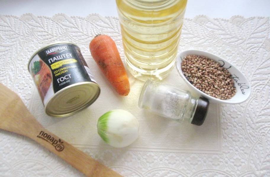Подготовьте ингредиенты для приготовления каши с паштетом.