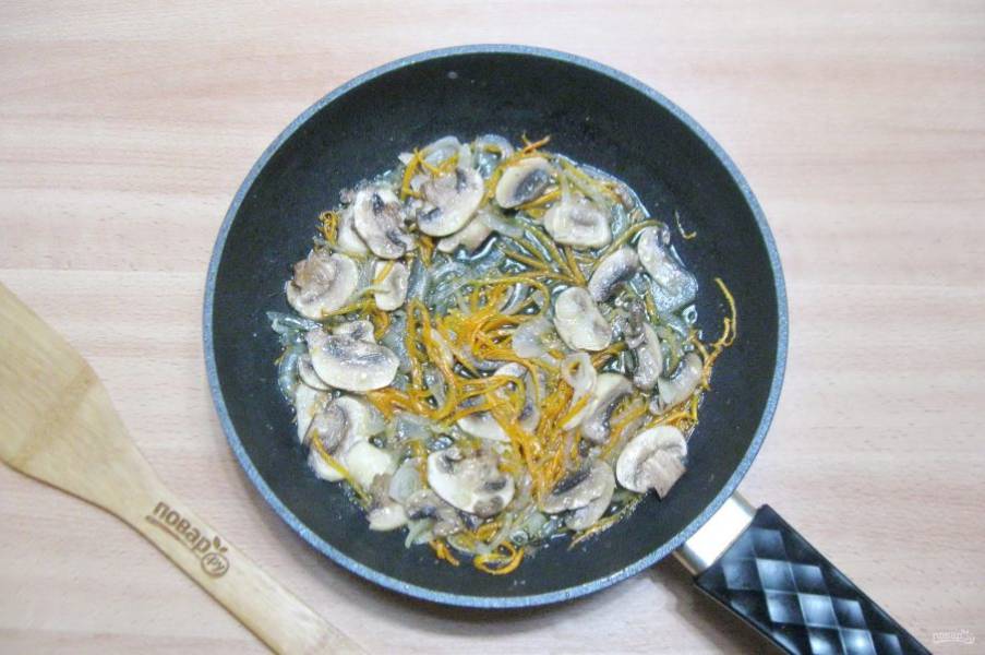 Продолжайте тушить овощи с грибами еще 5 минут.