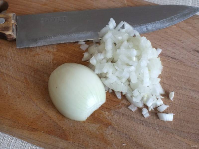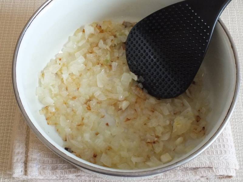 Обжарьте лук на растительном масле до легкого золотистого цвета.