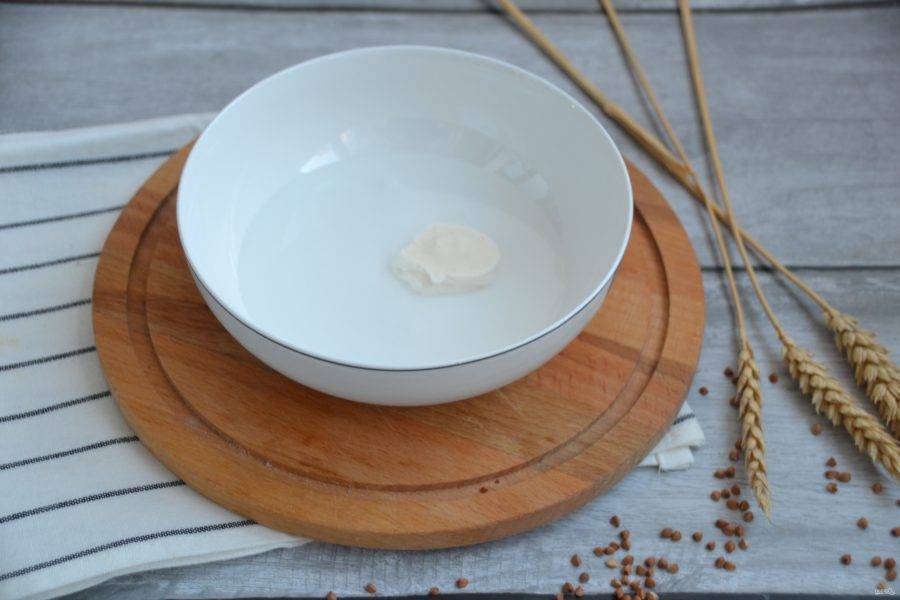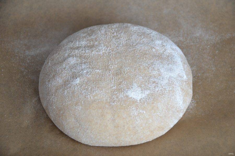 Смажьте емкость для расстойки теста растительным маслом, выложите тесто, накройте пленкой, оставьте при комнатной температуре для брожения на 3 часа.