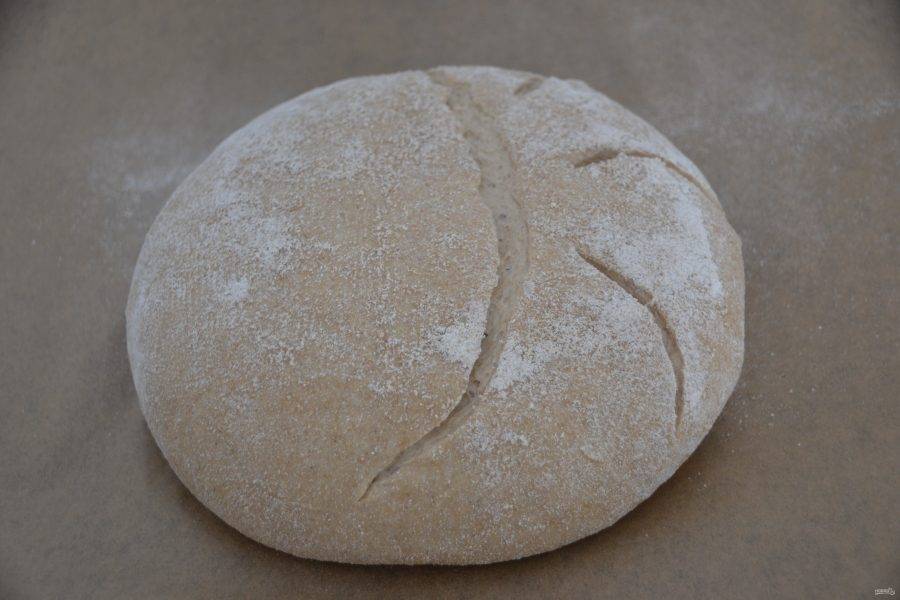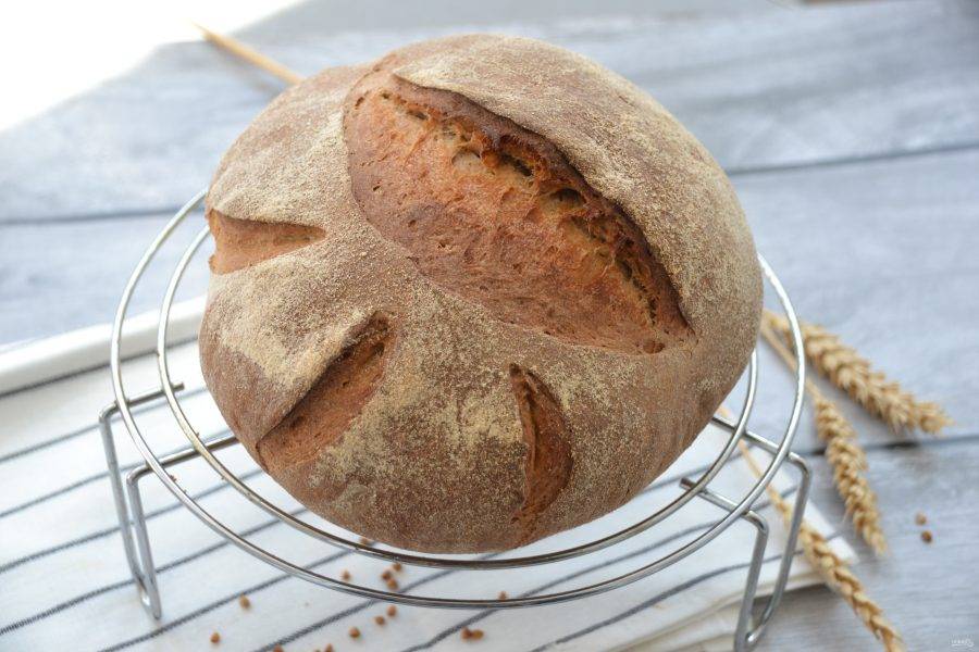 Разогрейте духовку до 250 градусов в режиме "верх-низ", выпекайте первые 10 минут при этой температуре. Затем переключите духовку на 180 градусов и выпекайте еще 40-45 минут до готовности. Готовый хлеб остудите на решетке.