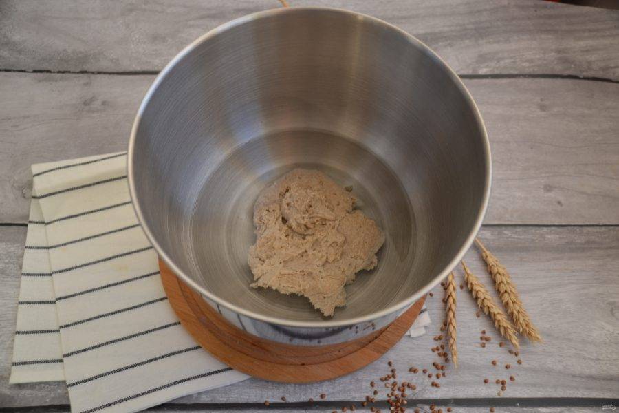 Приготовьте ингредиенты в соответствии с рецептом, включая опару, которую следует приготовить за 8-10 часов до начала замеса теста.