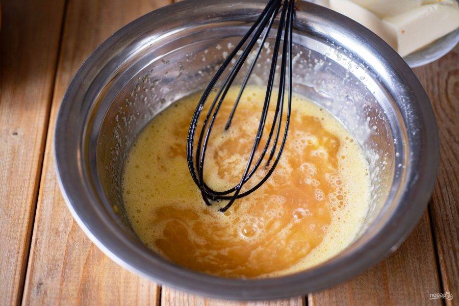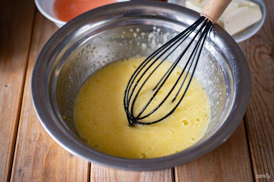 Венчиком активно перемешайте эти ингредиенты до получения однородной смеси.