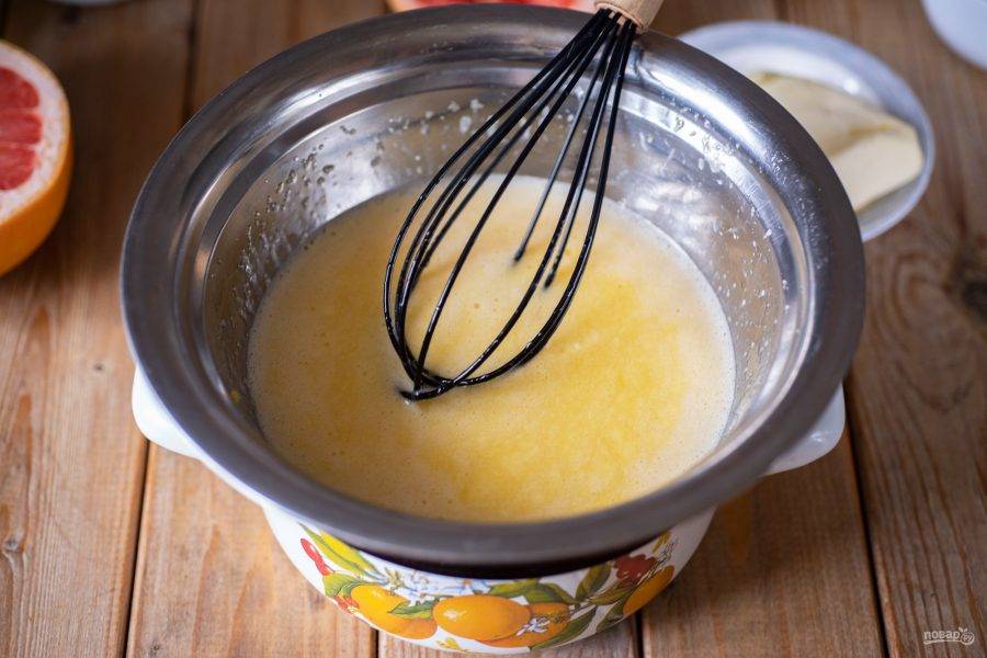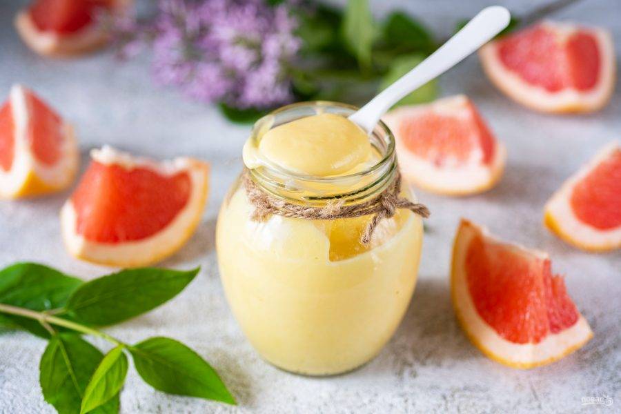 Курд из грейпфрута очень просто приготовить — в итоге получается нежный, достаточно густой крем, который отлично подойдет для приготовления домашних тортиков, капкейков, пирожных.