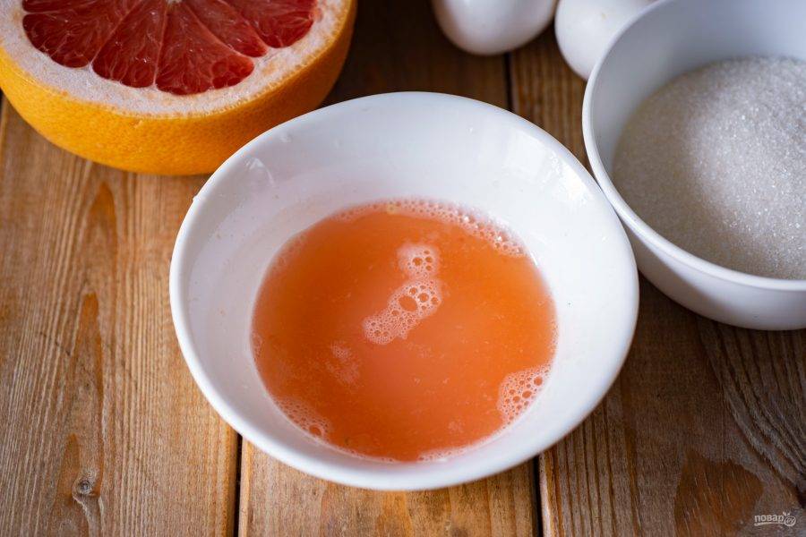 Если готового сока грейпфрута у вас нет, то выдавите из свежего фрукта необходимое количество.