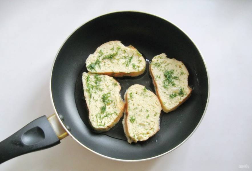 Обжарьте гренки со всех сторон до золотистого цвета.