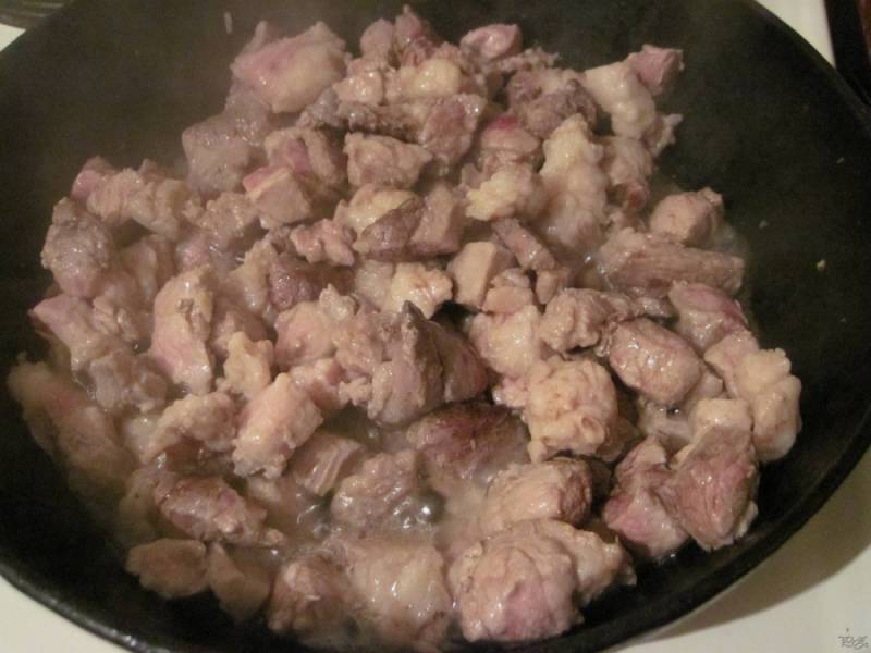 3. На растительном масле обжариваем говядину до готовности. Солим и перчим по вкусу.