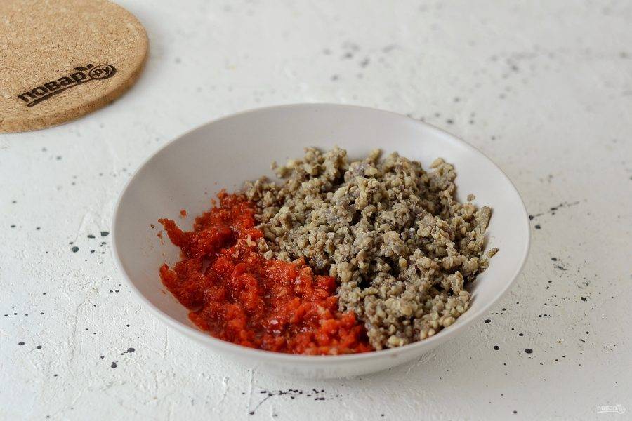 Шампиньоны и болгарский перец тоже измельчите в мясорубке.