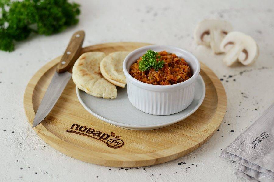 Готовим грибную икру из шампиньонов в духе французской кухни. Она хорошо будет сочетаться со свежим поджаренным багетом, также можно использовать, как начинку для тарталеток или блинчиков.