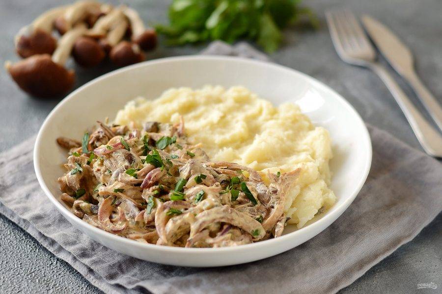 Грибной строганов готов, приятного аппетита!