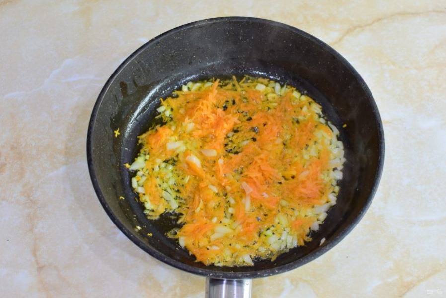 В это время подготовьте овощи. Очистите лук и морковь. Лук мелко нарежьте, а морковь потрите на терке.