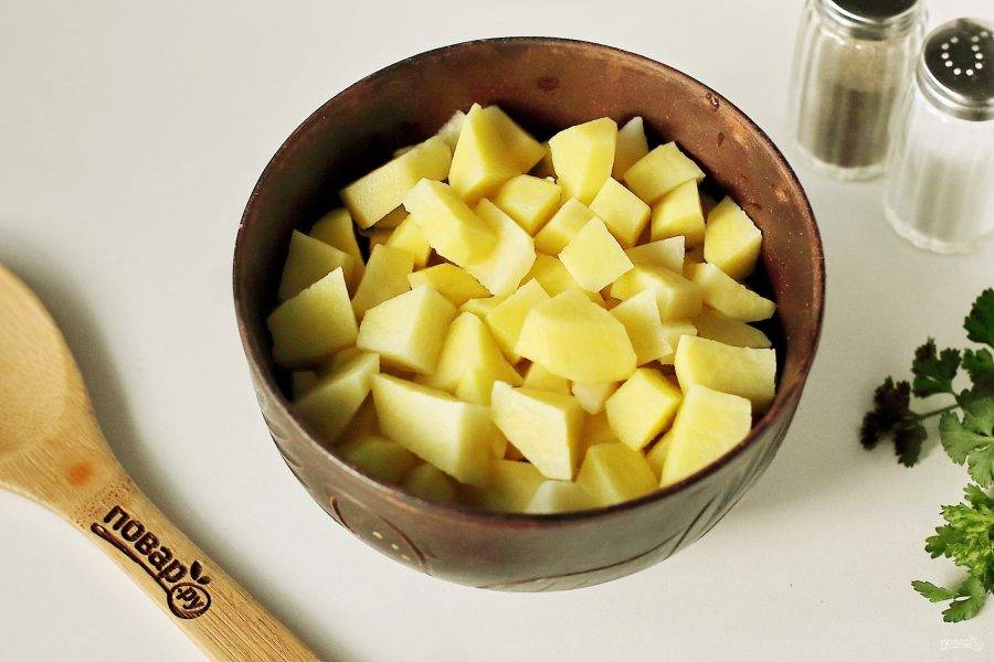 Раскатайте тесто колбаской и нарежьте маленькими кусочками. Размер зависит от желаемого размера галушек, но учтите, что они еще увеличатся при варке.