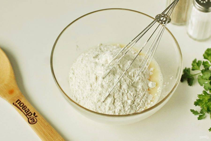 Начнем с приготовления галушек. В глубокой миске взбейте яйцо с солью и молоком.