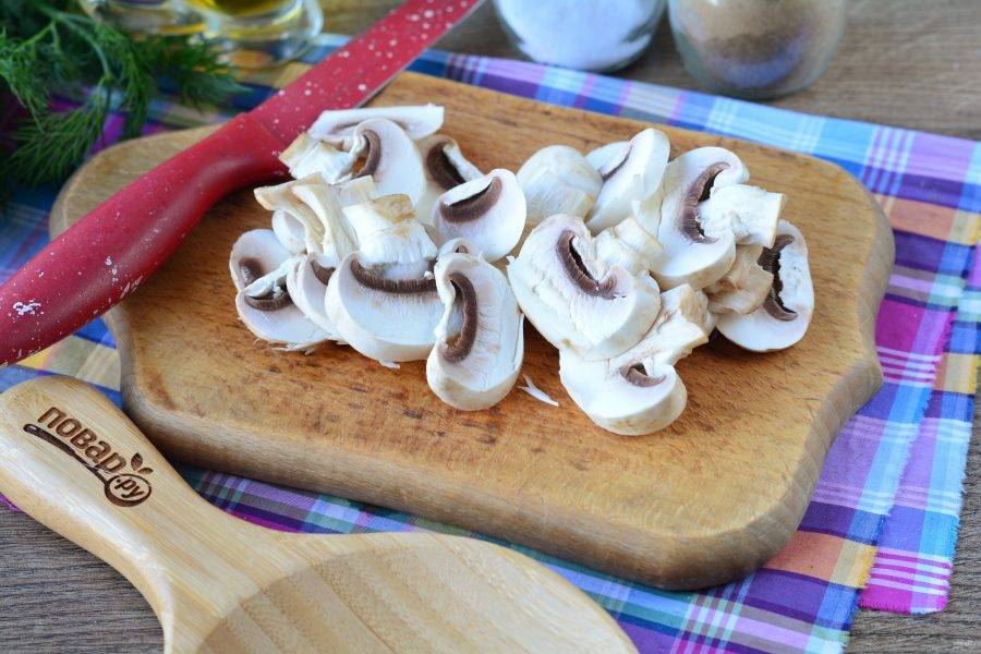 Разогрейте масло в кастрюле, всыпьте грибы и обжарьте. Добавьте соль по вкусу.